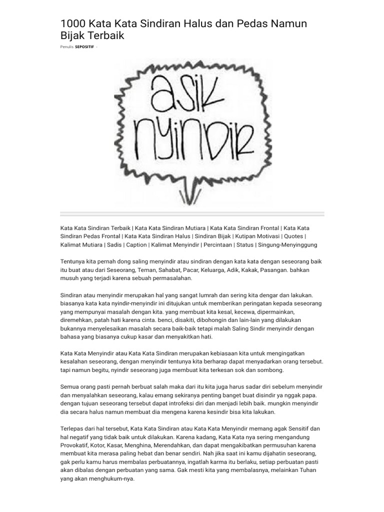 1000 Kata Kata Sindiran Halus Dan Pedas Namun Bijak Terbaik Sepositif